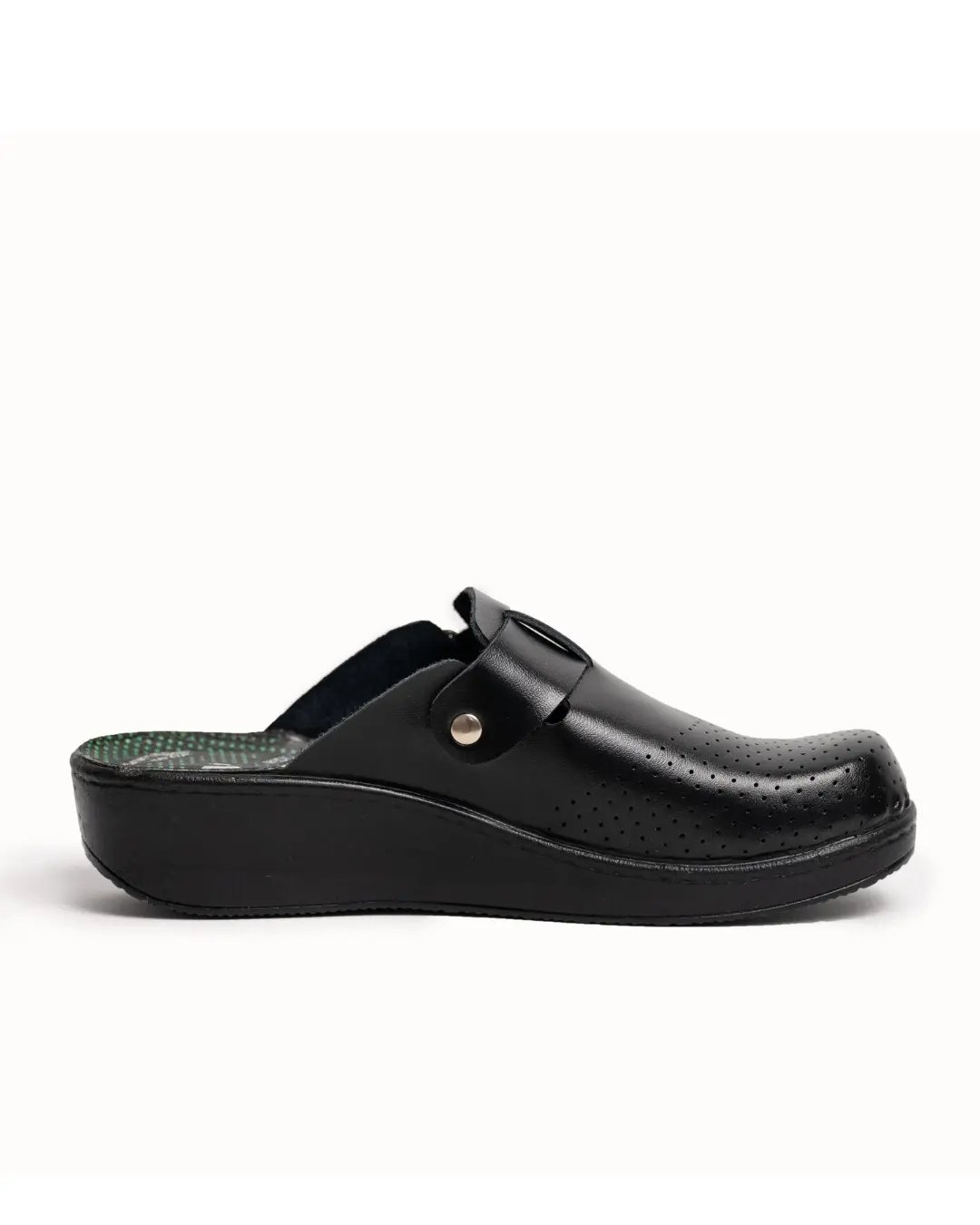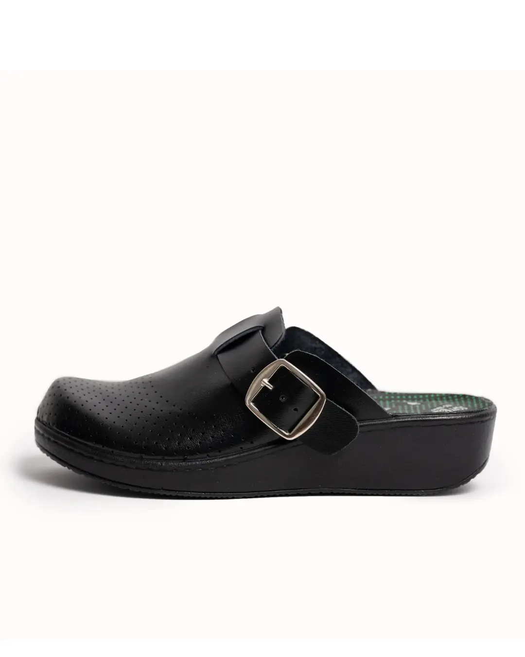 Klompe su izrađene od prirodne kože – i gornjište i tabanica, što omogućuje dugotrajnost, udobnost i ugodan osjećaj prilikom nošenja. Đon je napravljen od PU materijala sa antiklizačima, što daje sigurnost i stabilnost pri hodu.